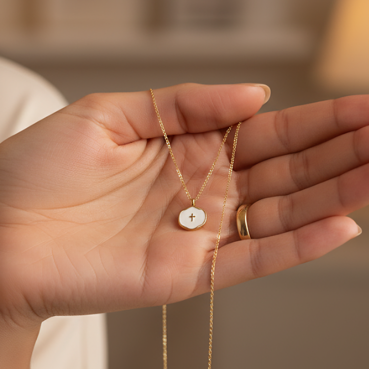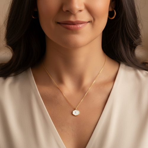 Más que un accesorio, este collar es un recordatorio íntimo de que nunca caminas sola. Un toque de luz que acompaña tus pasos, eleva tu presencia y honra lo que llevas en el corazón